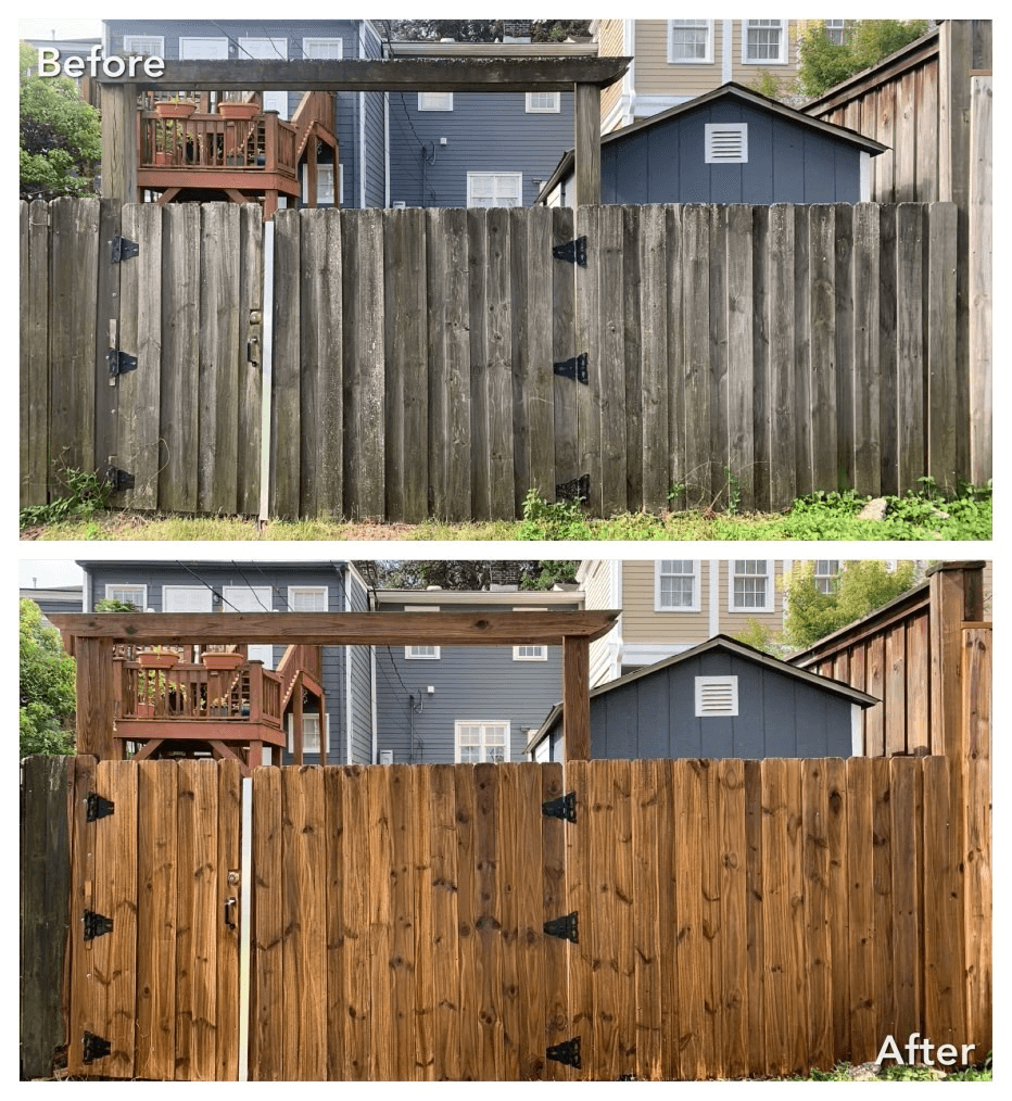 Using the correct water pressure for your material, we gently wash away contaminants while protecting your fence or deck’s integrity. This restores the natural color and appearance of the wood or composite.
